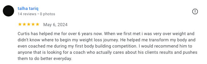 - Experience tailored nutrition guidance with Coach Curtis’ 1-on-1 coaching, featuring personalized meal plans designed with custom-calculated calories, protein, carbs, and fats. Receive expertly crafted supplement protocols and weekly check-ins for continuous support and accountability.